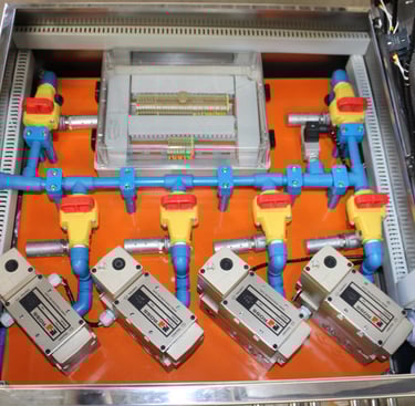 Painel Pneumático com Válulas POPPET e Válvulas de segurança para exaustão.